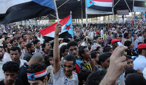 Protesters in Aden, Al Mansoora during the Arab Spring 2011 calling for the secession of South Yemen from the North. AlMahra